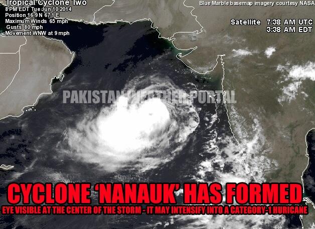 Cyclone ‘Nanauk’ is now 878 km south of Karachi while 660 km southwest of Mumbai and 990 km southeast of Masirah, Oman. It has started moving in a WNW direction towards Oman. In the next 12 to 24 hours it is expected to further intensify into a category-1 hurricane. On June 14 late/June 15, it may weaken significantly before hitting central Oman as a low pressure or a depression. Following is the current status of the storm;